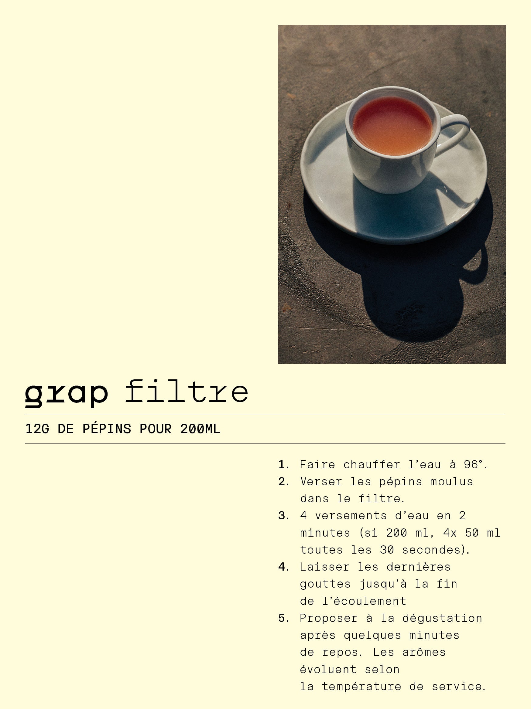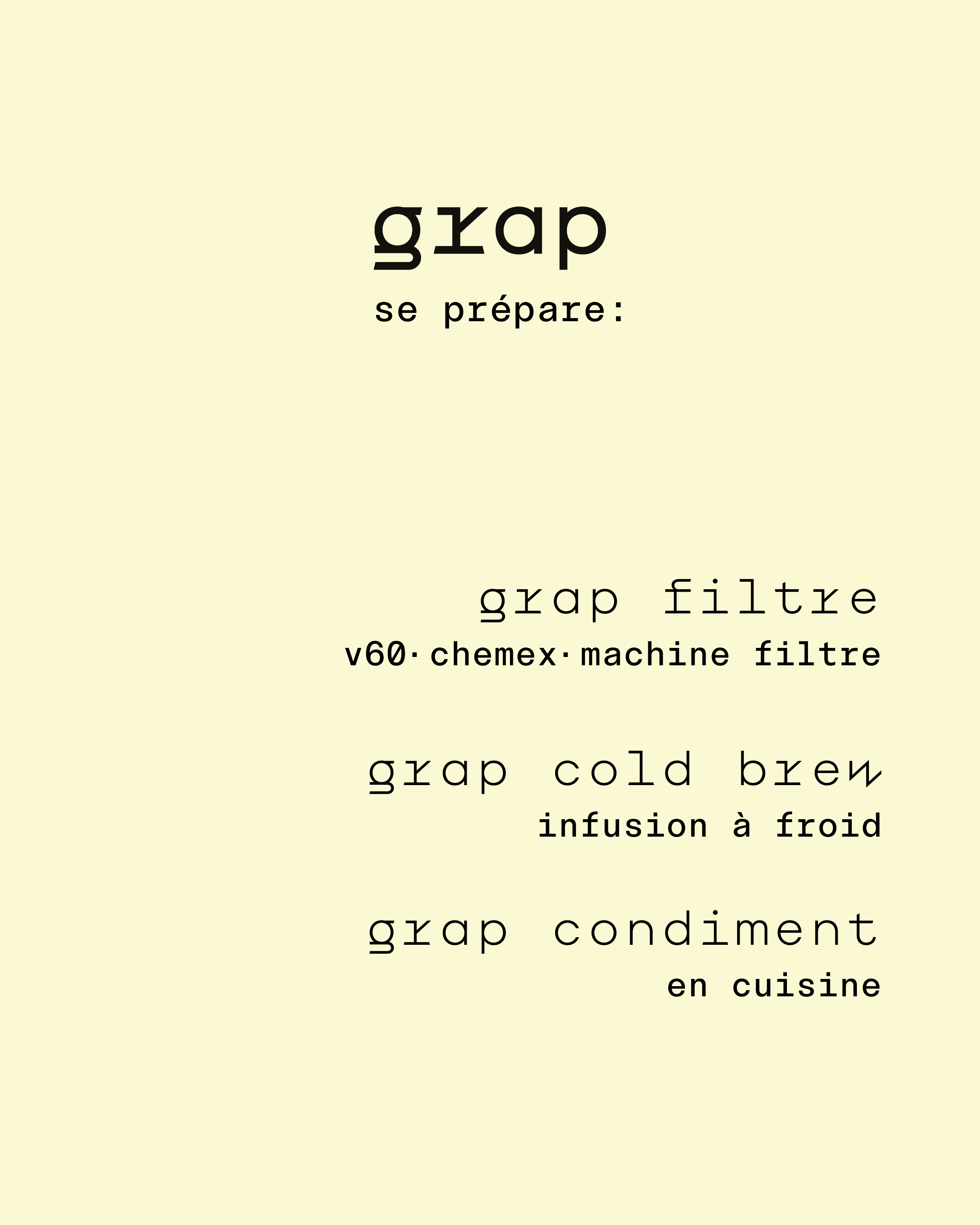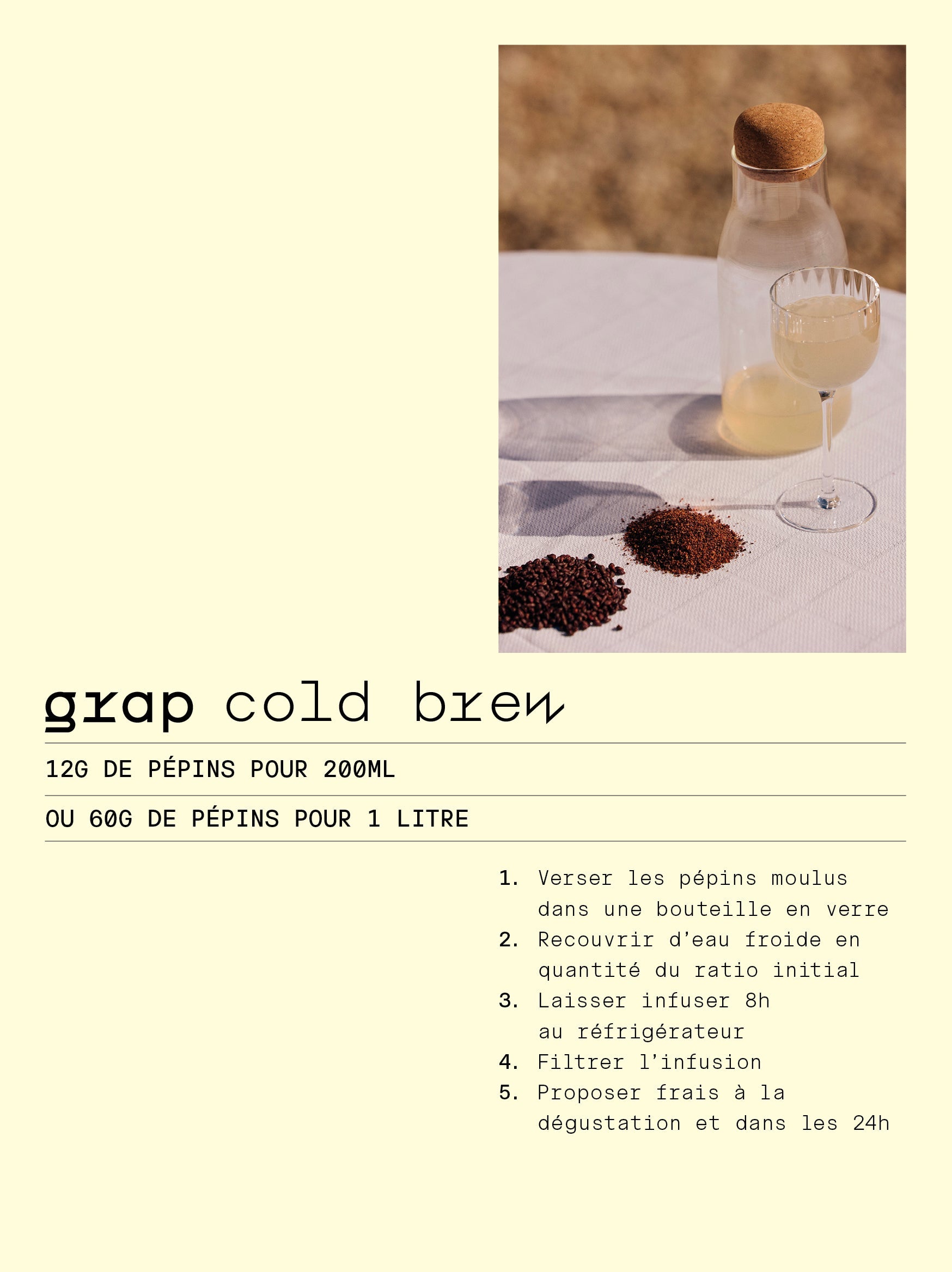 GRAP préparé en cold brew est une infusion fraîche, désaltérante, délicate, aux notes de noisettes, de praliné, de chocolat et lactiques.